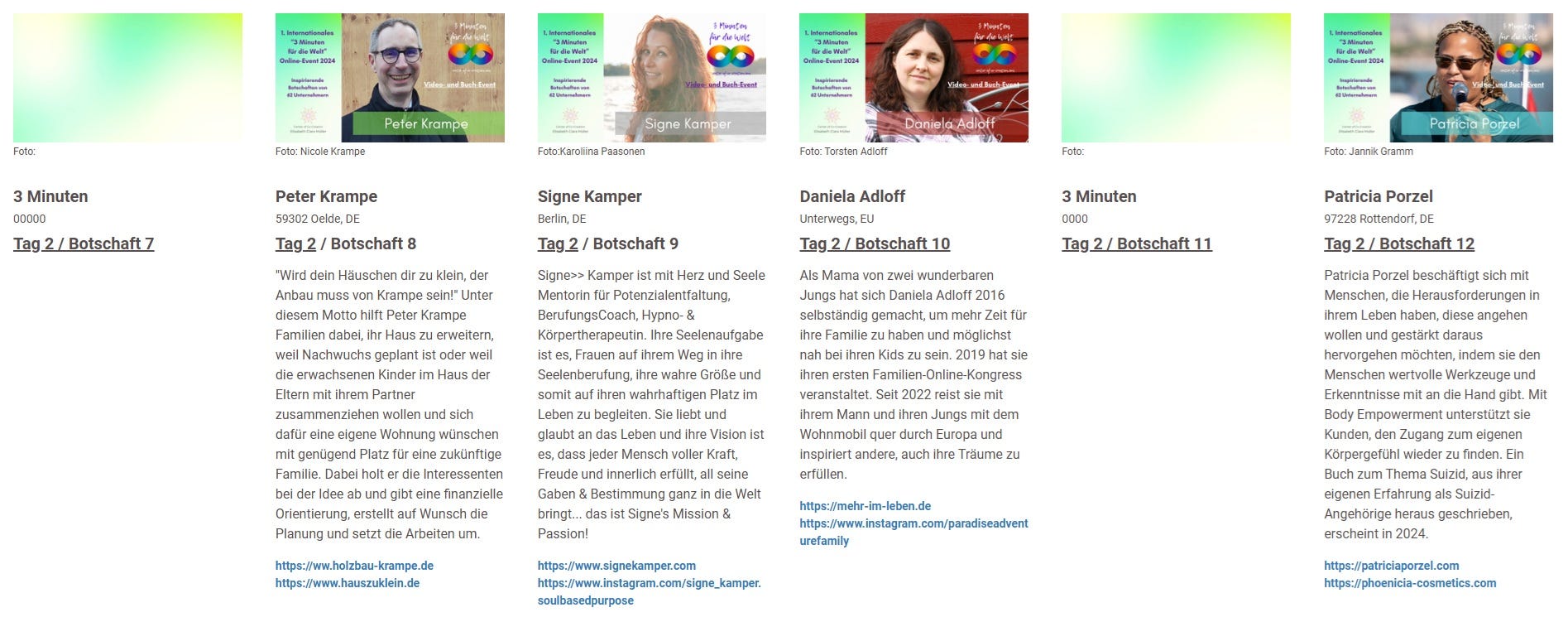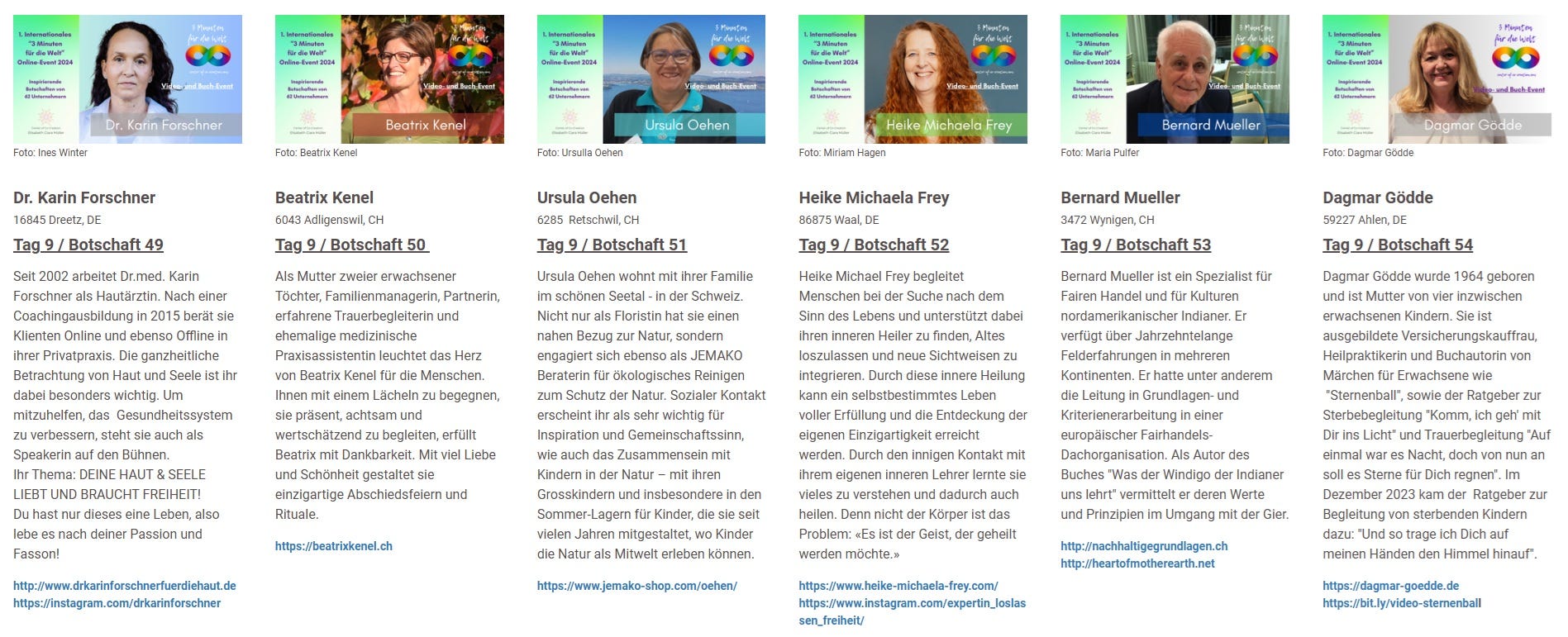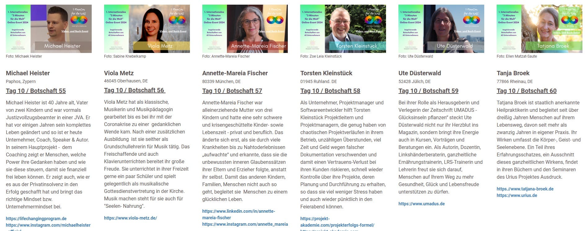08.05.2024 - Start Launch - 1. Internationales "3 Minuten für die Welt" Online-Event - ÜBERSICHT ÜBER DIESE SEITE für teilnehmende Unternehmer/innen (Partnerseite)